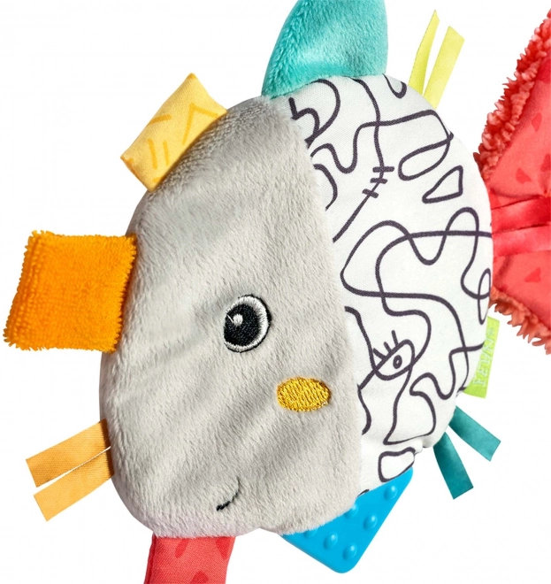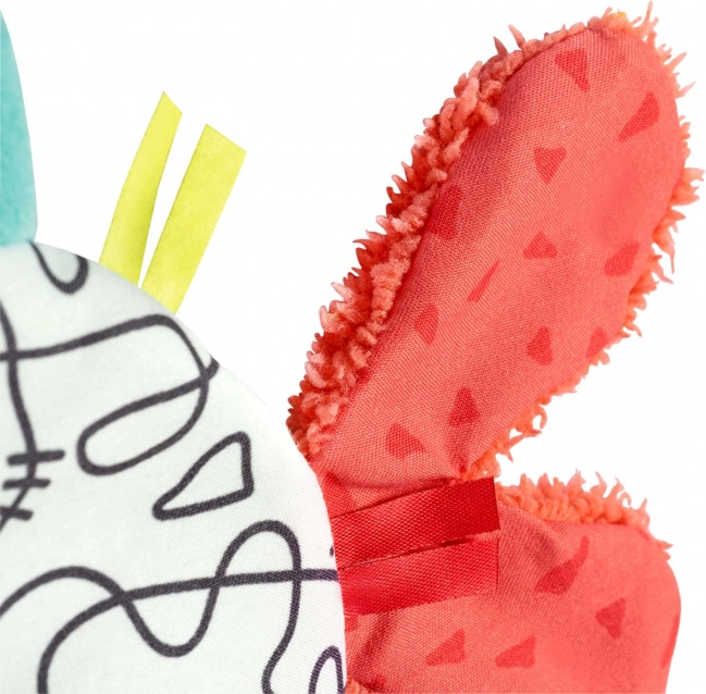 Puszysta grzechotka z wieloma elementami aktywizującymi, takimi jak szeleszczący papier, gryzak, mieszanka materiałów. Zabawka do chwytania w zabawny sposób wspiera słuch dziecka, zmysł wzroku, dotyku oraz zdrowy chwyt – idealna jako prezent dla chłopców i dziewczynek na narodziny, urodziny lub chrzest.