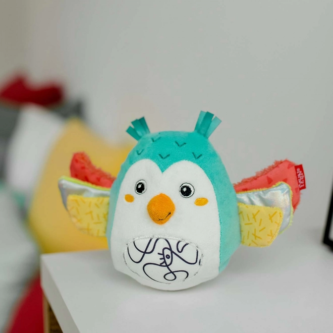 Puszysta grzechotka z wieloma elementami aktywności, takimi jak dzwoneczek i szeleszczący papier. Zabawka do chwytania w zabawny sposób wspiera słuch dziecka, wzrok, dotyk, zdrowy chwyt oraz logiczne myślenie – idealna jako prezent dla chłopców i dziewczynek.