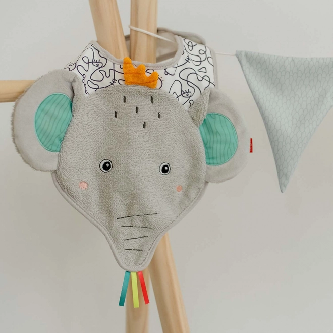 Śliniak na ślinienie, ściereczka na wypluwanie i ochrona przed zalaniem w jednym: szary śliniak z frotte w kształcie słonia zapewnia optymalną ochronę podczas jedzenia. Zapięcie na rzep ułatwia zakładanie. Materiał wytrzymuje częste pranie i codzienne użytkowanie. Doskonały prezent dla niemowlęcia.
