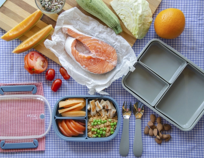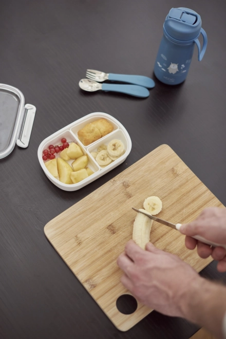 Silikonowy zestaw do posiłków dla dzieci z motywem wiewiórki, 9 elementów, ciemnoniebieski