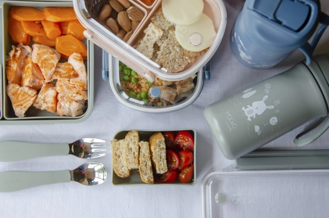 Termos ze stali nierdzewnej z ustnikiem, dzięki czemu nadaje się dla dzieci już od 6 miesięcy. Utrzymuje zawartość chłodną do 24 godzin lub ciepłą do 12 godzin. Uszczelniona pokrywka zapobiega wyciekaniu, a praktyczna pętelka ułatwia przenoszenie i manipulację termosem.