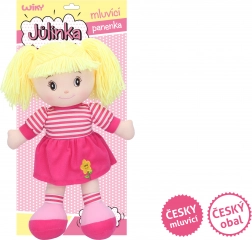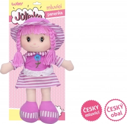 Odkryj urok mówiącej Laleczki Julinki, która potrafi opowiadać cztery znane czeskie wyliczanki, kiedy jej naciśniesz brzuszek. Swoim miękkim ciałkiem i uroczą buźką, szybko zdobędzie serce Twojej córeczki.