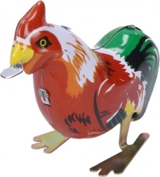 Spraw dzieciom nostalgiczną zabawkę, która przynosi radość z prostego mechanicznego działania. Metalowy kogucik jest napędzany mechanizmem sprężynowym, który nakręca się za pomocą kluczyka. To wspaniały sposób na zapoznanie dzieci z podstawami fizycznymi ruchu.