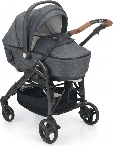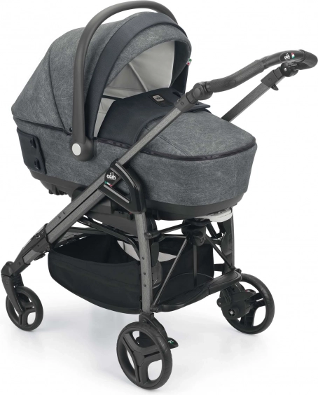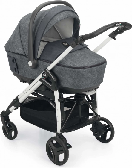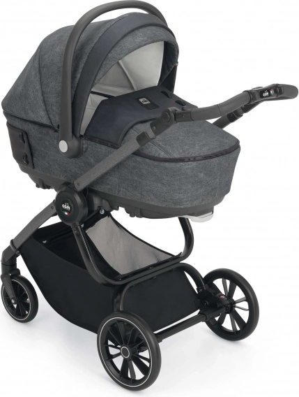 Przestronna głęboka gondola o nowoczesnym wyglądzie z dodatkami w postaci ciekawych guzików. Pokrowiec na nogi do gondoli można łatwo odpiąć za pomocą zamków. Dzięki wentylacji w budce idealnie sprawdzi się także w letnich miesiącach. Po rozłożeniu wsporników na spodzie gondoli można ją używać jako kołyski. Za pomocą blokady na spodzie gondoli możliwa jest regulacja wysokości zagłówka dziecka. Gondola ma prosty system odpinania od stelaża za pomocą jednego zabezpieczenia, co zapewnia jeszcze większe bezpieczeństwo podczas manipulacji z gondolą i dzieckiem.