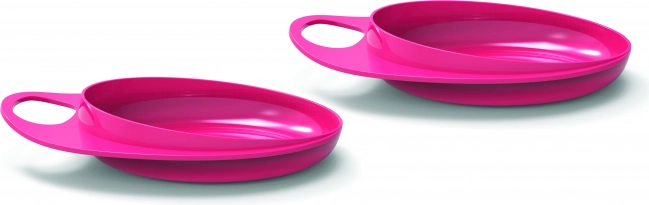 Dzięki praktycznemu pierścieniowi wokół krawędzi talerz łatwo chwycisz zarówno Ty, jak i dziecko. Lekki, wytrzymały materiał nadaje się do codziennego użytkowania, a przyjemny pastelowy różowy kolor umili każdy posiłek.