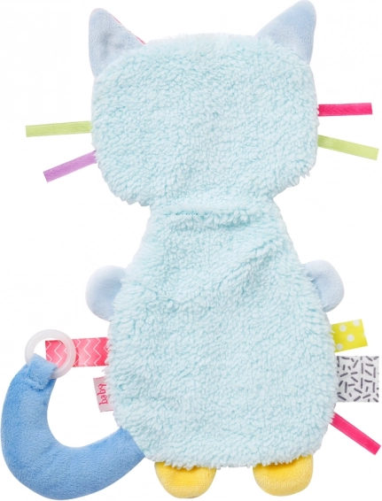Dzięki mieszance materiałów oraz stymulującemu dźwiękowi ukrytego szeleszczącego papieru nigdy nie będzie nudno. Niemowlęta uwielbiają koci kształt i jego puszyste futerko, by chwytać, dotykać, odkrywać i przytulać! Urocnego kotka można zabrać wszędzie — towarzyszy dziecku podczas zabawy i drzemek. Praktyczny pierścień do przymocowania.