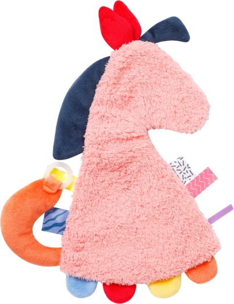 Dzięki mieszance materiałów oraz stymulującemu dźwiękowi ukrytego szeleścącego papieru nigdy nie będzie nudno. Dzieci uwielbiają kształt konika i jego puszystą sierść – mogą go chwytać, dotykać, odkrywać i przytulać! Uroczy konik może towarzyszyć wszędzie i być z dzieckiem podczas zabawy i marzeń.