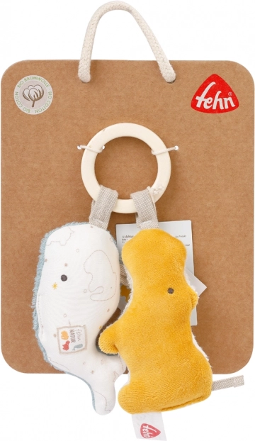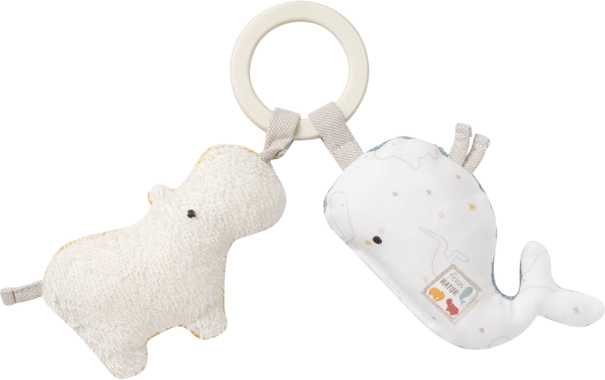Urocza zabawka w kształcie dwóch małych, wesołych zwierzątek to gadżet, który Twoje dziecko polubi od pierwszego wejrzenia. Dzięki praktycznej pętelce można ją przymocować do wózka, łóżeczka, w samochodzie lub gdziekolwiek zechcesz. Ci przytulni przyjaciele, dzięki swojej kolorystyce, nadają się zarówno dla dziewczynki, jak i dla chłopca. Materiał, z którego wykonano zabawkę, jest bardzo przyjemny w dotyku dla małych dziecięcych rączek. Zwierzątka z łatwością przyciągają uwagę nie tylko ciekawych dziecięcych oczu, ale i uszu, ponieważ w środku mają grzechotkę.