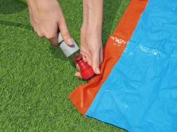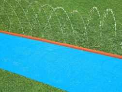 Sama instalacja jest prosta. Wystarczy rozłożyć zjeżdżalnię na trawę, podłączyć wąż i cieszyć się godzinami wodnej zabawy na świeżym powietrzu.