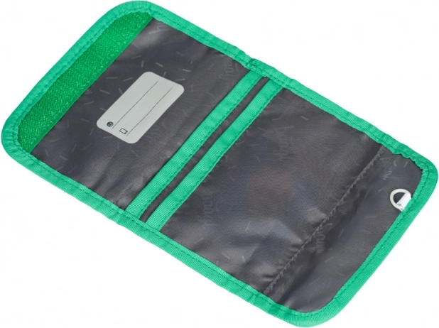 Portfel oferuje kilka przegródek na banknoty i karty oraz praktyczną kieszonkę na monety na zamek. Dzięki sznurkowi do zawieszenia na szyi dziecko go nie zgubi i ma go zawsze pod ręką – idealny na wycieczki, zajęcia i turnieje.