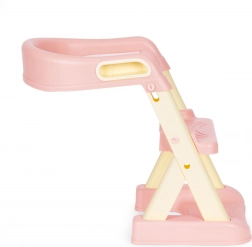 Zintegrowana drabinka z dwoma stopniami ma regulowaną wysokość, dzięki czemu łatwo dopasowuje się do młodszych i starszych dzieci. Antypoślizgowe faktury na stopniach zapobiegają poślizgnięciom, a wytrzymały plastik łatwo utrzymać w czystości. Lekka konstrukcja pozwala dzieciom samodzielnie przenosić i używać produkt, wspierając ich samodzielność i pewność siebie.