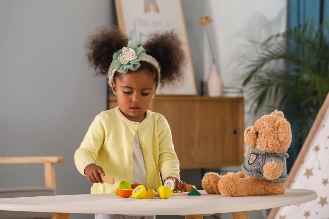 Ten wysokiej jakości drewniany zestaw owoców zapewnia dzieciom realistyczne wrażenia z krojenia dzięki rzepom/magnesom, które pozwalają owoce wielokrotnie „kroić” i łączyć. Kolorowe owoce zachęcają do zabawy, rozwijają rozpoznawanie kolorów i kształtów oraz wzbogacają słownictwo.