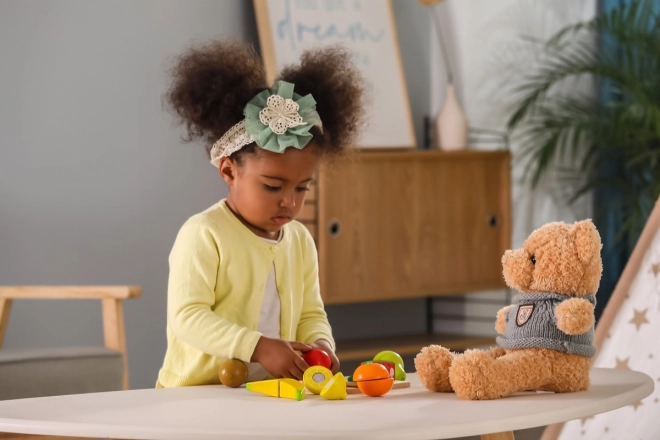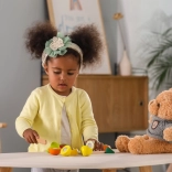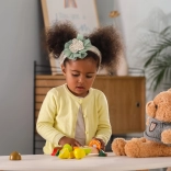 Owoce dzięki ukrytym łączeniom można wielokrotnie dzielić i łączyć – dzieci ćwiczą precyzję i koordynację w bezpieczny sposób.