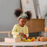 Kompletny zestaw z deseczką i nożem uczy prawidłowych ruchów w kuchni i pobudza wyobraźnię podczas zabawy w gotowanie.