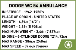 Ten realistyczny zestaw modelu Dodge WC 54 pozwala odtworzyć fragment historii z autentycznymi detalami. Model w skali 1:35 oraz licencja RAM TRUCKS gwarantują wysoką jakość i precyzję. Dzięki 293 klockom i figurce to idealny wybór nie tylko dla konstruktorów, ale także dla miłośników historii wojskowości.