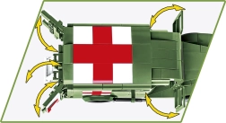 Model wiernie oddaje wygląd historycznej wojskowej karetki przeznaczonej do misji ratunkowych.
