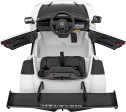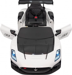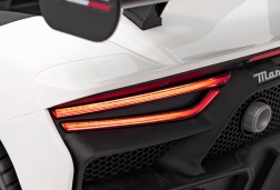 Dziecięcy elektryczny samochód Maserati MC20 GT2 jest idealny dla małych kierowców kochających przygodę i styl. Ten pojazd obejmuje różne udogodnienia, takie jak światła LED, otwierane drzwi oraz panel sterowania z Bluetooth. Jego realistyczny wygląd wyróżnia się detalami, takimi jak czarne siedzisko z ekoskóry dla większego komfortu oraz pas bezpieczeństwa.