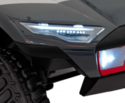 - Bezpieczny i wygodny: czarna ekoskóra na siedzeniu, elementy bezpieczeństwa oraz możliwość zdalnego sterowania.