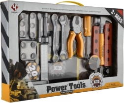 Młotek, szczypce, śrubokręt, klucze oraz elementy złączne – wszystko niezbędne do realistycznej zabawy w naprawy i rozwijania myślenia technicznego.