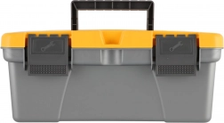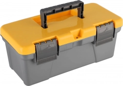 Wytrzymała plastikowa walizeczka z uchwytem i zatrzaskami utrzymuje wszystkie elementy razem i łatwo się przenosi.