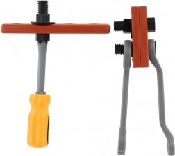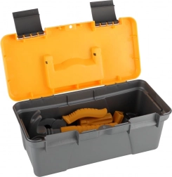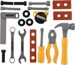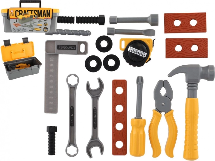 Ten bogato wyposażony zestaw dziecięcych narzędzi oferuje małym majsterkowiczom wszystko, czego potrzebują do pomysłowej zabawy – młotek, szczypce, śrubokręty, klucze, śruby, nakrętki, podkładki oraz „drewniane” listewki do łączenia. Wszystko jest umieszczone w wytrzymałej walizeczce, która łatwo się przenosi i pomaga utrzymać porządek.