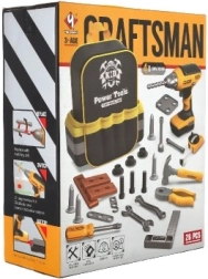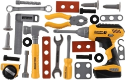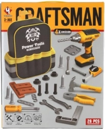 Zestaw zawiera 28 sztuk narzędzi, w tym wiertarkę akumulatorową, która symuluje prawdziwe narzędzia do zabaw i edukacji.