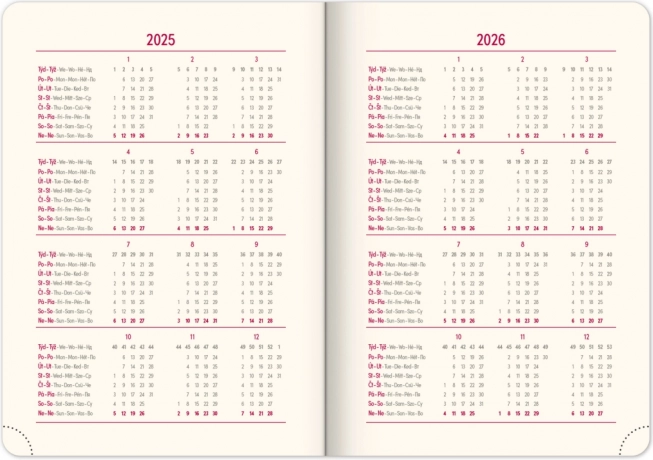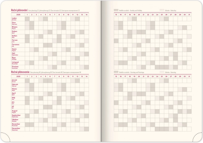 - Miesięczny kalendarz planowania na rok 2025 i 2026.