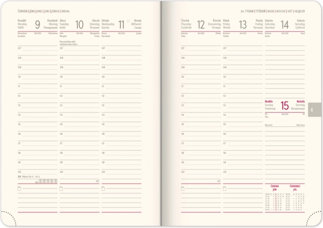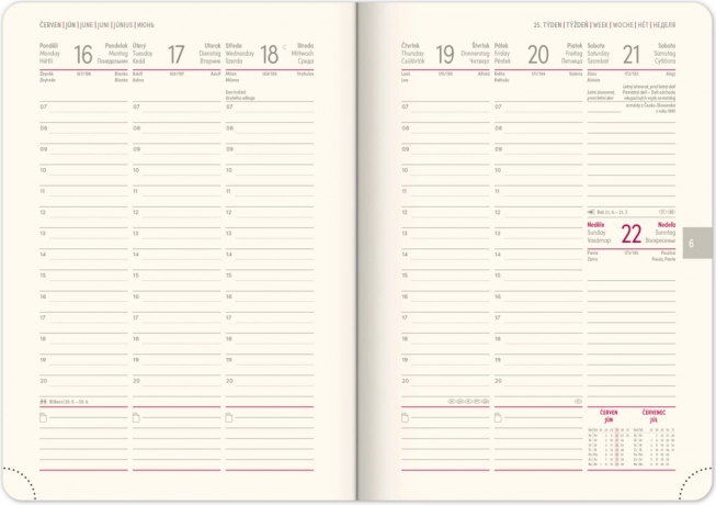 Tygodniowy dziennik Notique Twill 2025 w eleganckim niebiesko-srebrnym kolorze jest idealnym narzędziem do organizacji Twoich dni. Oferuje przejrzysty tygodniowy plan z kalendarzem czesko-słowackim i opisami w wielu językach.