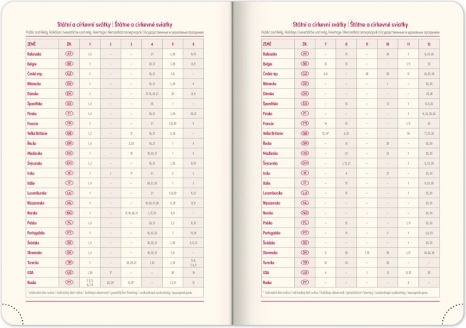 - Obejmuje święta Czeskiej i Słowackiej Republiki oraz międzynarodowe święta.