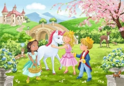 Odkryj zabawę i radość, jakie przynoszą RAVENSBURGER Dziecięce puzzle Królewscy przyjaciele. Te puzzle są idealnym rozwiązaniem dla małych dzieci, które uczą się cierpliwości i koncentracji. W jednym pudełku znajdziesz: