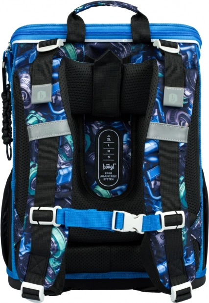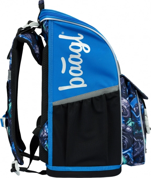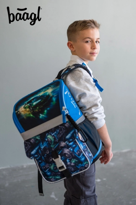 Zestaw szkolny Baagl Zippy samochód wyścigowy na pierwsze lata nauki obejmuje ergonomiczny tornister z regulowanym ERGO ADJUSTABLE SYSTEM, jednopoziomowy piórnik oraz worek z kieszenią. Tornister ma odchylany system otwierania, praktyczny organizer, elementy odblaskowe oraz wodoodporny materiał zapewniający codzienną niezawodność.