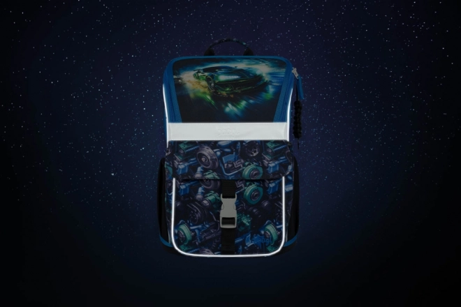 Praktyczny i stylowy zestaw z motywem samochodu wyścigowego ułatwi każdy szkolny dzień. Ergonomicznie ukształtowany tornister z przesuwnym systemem pleców ERGO ADJUSTABLE SYSTEM dokładnie dopasowuje się do wzrostu dziecka, a regulowane pasy naramienne, piersiowy i boczne pasy kompresyjne zapewniają komfort i prawidłowe rozłożenie obciążenia.