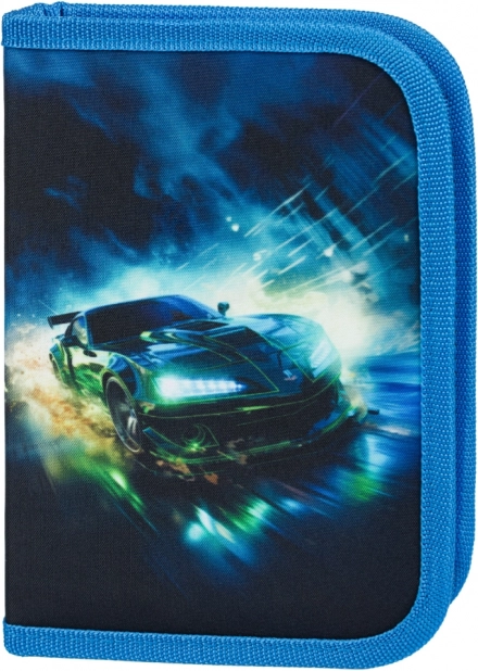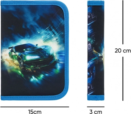 Jednopoziomowy piórnik z zamkiem YKK i motywem wyścigowym