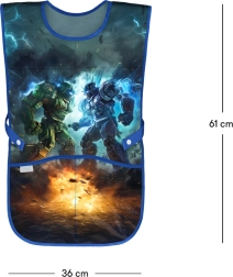 Przemyślany design z dwoma kieszeniami w dolnej części zapewnia miejsce na pędzelki, kredki czy drobne narzędzia. Świetny wybór do szkoły, świetlicy i na zajęcia pozalekcyjne.