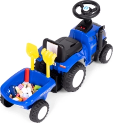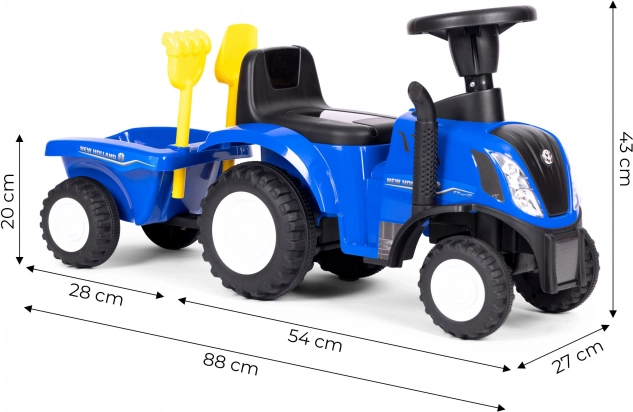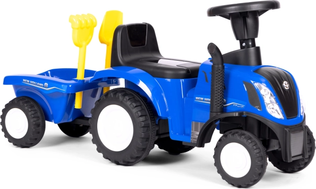Niebieski jeździk traktor o realistycznym wyglądzie i oficjalnej licencji NEW HOLLAND zapewnia dzieciom godziny aktywnej zabawy w domu i na dworze. Solidne, plastikowe wykonanie z metalowymi elementami gwarantuje długą żywotność i stabilną jazdę, a przyczepka poszerza możliwości zabawy i przewożenia skarbów z ogrodu czy piaskownicy.