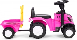 Jeździk traktor z przyczepką dla dzieci, interaktywna kierownica i dźwięki NEW HOLLAND – Różowy