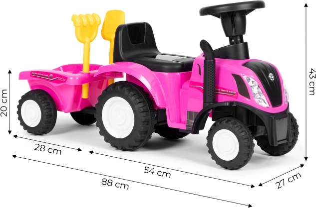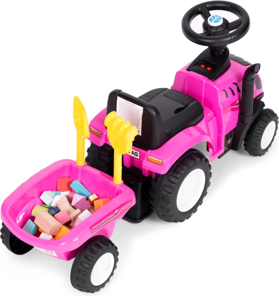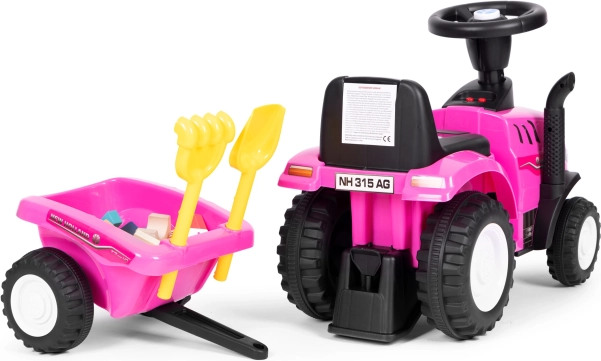 Stylowy dziecięcy jeździk traktor z odłączaną przyczepką zapewnia godziny aktywnej zabawy w domu i na zewnątrz. Dzięki licencji NEW HOLLAND, interaktywnej kierownicy z dźwiękami klaksonu i rozruchu silnika oraz stabilnej, wytrzymałej konstrukcji jest idealny dla małych farmerów od 12 miesięcy. W zestawie grabki i łopatka, wygodne siedzisko z oparciem oraz element przeciw przewróceniu dla maksymalnego bezpieczeństwa.
