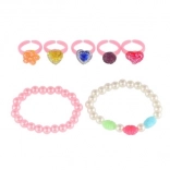 Ten uroczy zestaw dodatków przynosi dzieciom radość z kolorów i wyobraźni. Plastikowe pierścionki z motywami serduszek, kwiatuszków czy błyszczących kamyczków oraz elastyczne bransoletki łatwo się zakłada i przyjemnie nosi. Doskonale sprawdzą się do przebrań, w kącikach zabaw oraz jako drobny upominek.