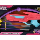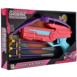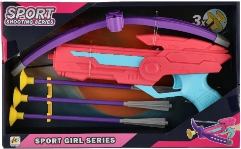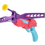 Kolorowa plastikowa kusza z trzema strzałami z przyssawkami oferuje bezpieczne i zabawne strzelanie do celu dla dzieci.