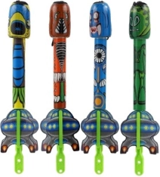 Zabawka oferuje różnokolorowy design i podczas lotu wydaje gwizd, który przyciąga uwagę i zwiększa zabawę.