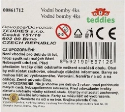 Zestaw zawiera 4 bomby wodne odpowiednie dla dzieci powyżej 3 lat. Doskonały wybór do zabawy w ogrodzie lub przy basenie.