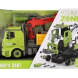 skręcany samochód budowlany z żurawiem, 31 cm, napęd bezwładnościowy, światło i dźwięk