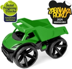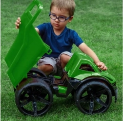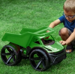 Wywrotka MAXIMUS w zielonym kolorze zachwyca futurystycznym wyglądem, dużymi matowymi kołami i dopracowanymi detalami. Lekka, ale solidna konstrukcja jest łatwa w prowadzeniu nawet dla młodszych dzieci, a dzięki wytrzymałemu plastykowi sprawdzi się w ogrodzie, w parku i w pokoju dziecięcym.