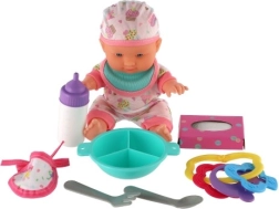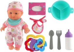 Ta laleczka niemowlę o wielkości 22 cm to świetny towarzysz codziennej zabawy. Dzięki twardemu plastikowemu korpusowi dobrze trzyma kształt i łatwo utrzymać ją w czystości. Zestaw zawiera wszystko, co potrzebne do opieki nad maluszkiem – od karmienia po zabawę.
