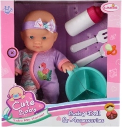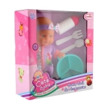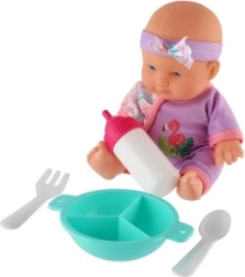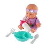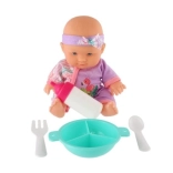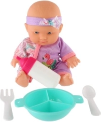 W opakowaniu znajdziesz kompletny zestaw do karmienia – butelkę, miseczkę, łyżeczkę i widelczyk – który pozwala dzieciom ćwiczyć małą motorykę i naśladować codzienne opiekuńcze rytuały. Zabawa lalką rozwija empatię, komunikację i umiejętności społeczne.