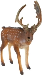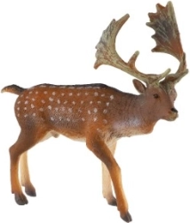 Figurka wiernie przedstawia daniela europejskiego z cętkowanym ubarwieniem i typowymi łopatowatymi porożami – idealna do nauki i zabawy.