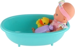 W zestawie znajduje się turkusowa wanienka i żółta gumowa kaczuszka, które zapewniają autentyczną zabawę w kąpiel, rozwijając wyobraźnię i kreatywność.