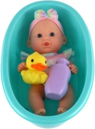 Urocza laleczka niemowlę w wanience z kaczuszką ucieszy każdego małego miłośnika kąpieli. W zestawie znajdują się praktyczne akcesoria do zabawy w kąpiel i opiekę. Solidne plastikowe ciało, wanienka z kaczuszką oraz łatwa pielęgnacja sprawiają, że ten zestaw to świetny prezent dla dzieci od 3 lat.