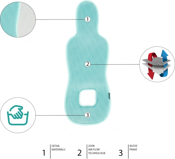 Wkładka Zopa BREEZE została opracowana na podstawie opinii rodziców, którzy potrzebowali letniej wkładki nie tylko oddychającej, ale także w pełni kompatybilnej ze wszystkimi elementami bezpieczeństwa fotelików. Dlatego powstały trzy specyficzne warianty, z których każdy jest idealnie dopasowany do odpowiedniej kategorii fotelików, aby nie utrudniać prawidłowego prowadzenia pasów. Zaawansowany technologicznie materiał z trójwymiarową strukturą heksagonu umożliwia swobodny przepływ powietrza pomiędzy wkładką a dzieckiem.