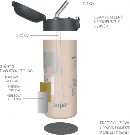 Silikonowy zestaw obiadowy dla dzieci z motywem sowy, 8 elementów, beżowy